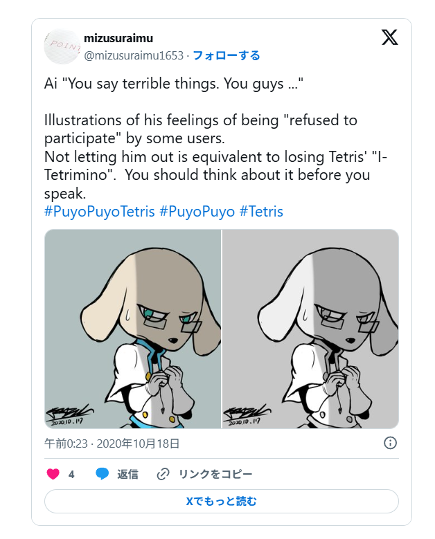 今でもたまにプレイしているぷよぷよテトリス2の発売前に、公式が自分が無印の頃から大好きだったとあるキャラが新作に登場することが決定したポストをした際に、ある一部海外ユーザーから、