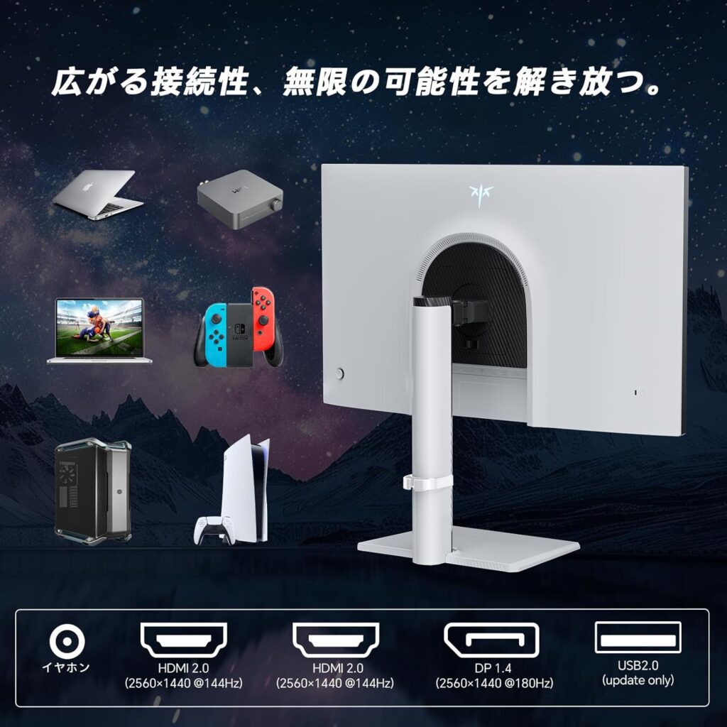 switch2本体と合わせて余裕で10万円以上の予算オーバーとなってしまったが、PCゲームで対戦ゲームや綺麗な画質でオープンワールドをプレイする予定、もしくはプレイするためにモニターを買い替える予定の方にとっては、このモニターがほとんど叶えてくれるだろう。