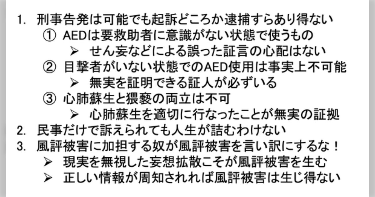 ちなみにSNSをやっていない方は知らないと思いますが、まあ、知らなくてもいいですけど、そもそも「女性にAEDを使って痴漢扱いして訴えられた事例はない」ことが既に判明しているんですよ。