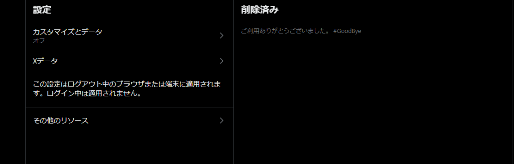 まあ、辞めてから一度も投稿すらしていない状態で放置して、今年に乗っ取られた事件もあったので、色んな意味で安全性のために削除するのに丁度良かったと思います。そもそも8月以降Xを開いていなかったわ。