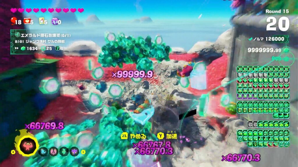 倍率が一万桁になる音がクソ気持ち状態になるので、エメラルドラッシュで初めてカンスト目指すならこちらって感じでね。投棄場も同じ感じで行けるかな?