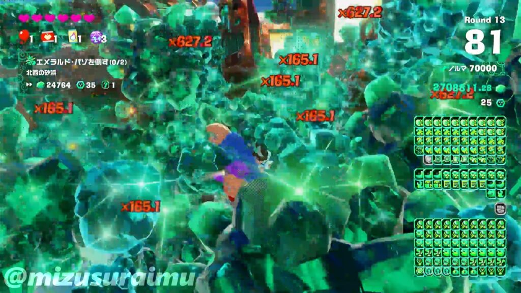 前回はミッションで出現する敵をメインにヘビバナンザでカンストしていたが、なんとこっちをやるより、グルーヴ系でエメラルドの倍率を上げて地形破壊する方がカンストしやすいことを見つける。