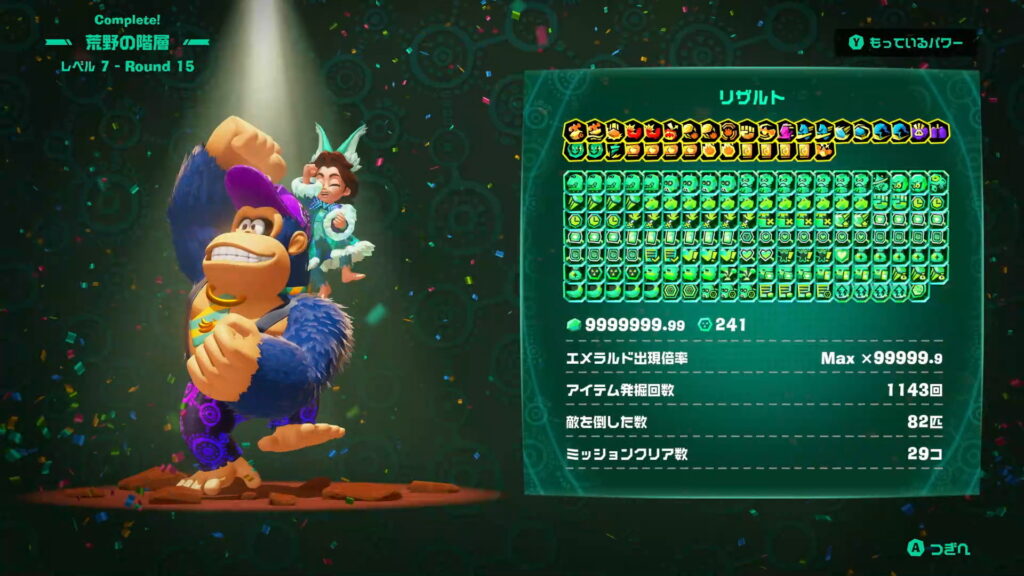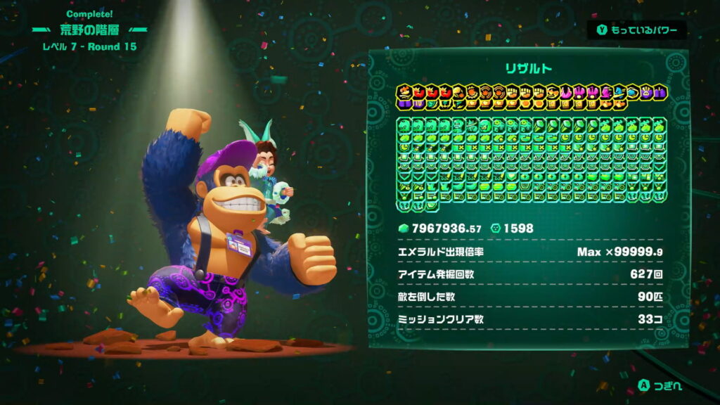 【ドンキーコングバナンザ】ジャングルビートの原作再現キター!エメラルドラッシュイベント第3弾をバナンザ変身なしで「カンスト」してみた雑談【追記:荒野の階層カンストしました!】