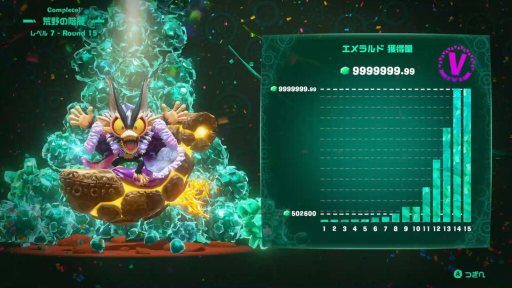 しかし初見時にはチップ泥棒もあると思ってタコを倒す際に装備をバナチップネクタイを装備してて、最後の最後にワープバレルが足りなく上に行けなくて詰みになってしまったのだ。つまり「初見で一発カンスト」もあり得たということ。