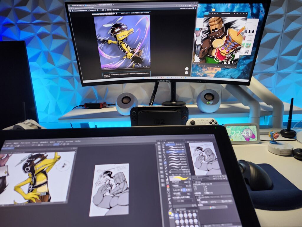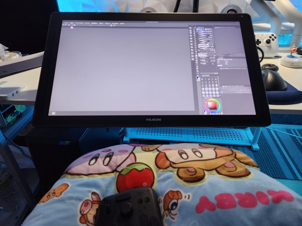 液タブを前に持ってきて作業(二次創作)している図。最近はこれがド安定。