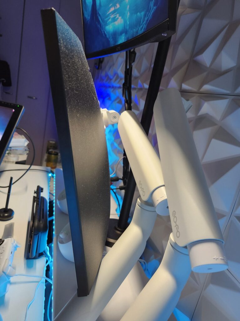 てか、むしろゲーミング部屋を紹介している写真とか見てもモニタースタンドを使っているユーザーは、私が見た感じ一割以下しかいなかったので、PC環境を作っている方のほとんどがモニターアームの便利さとメリットに気づいているんだろう。