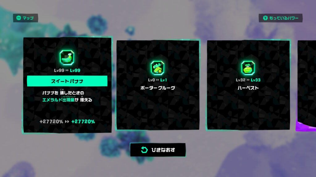 しかしこれだけを集めても無理なんで、さらにアンコールグルーヴとボーダーグルーヴといったグルーヴ系でエメラルドの倍率を稼いだ状態にしないといけないと思われ、外れパワーがほとんどないと思った。