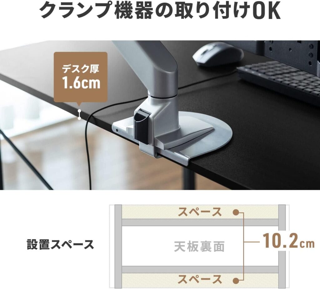 と言いたいところだが、むしろモニターを浮かせて作業スペースを最大限に確保できることから、デスク上にモニターを直接置くより、モニターアームに取り付けた方が絶対に良い。