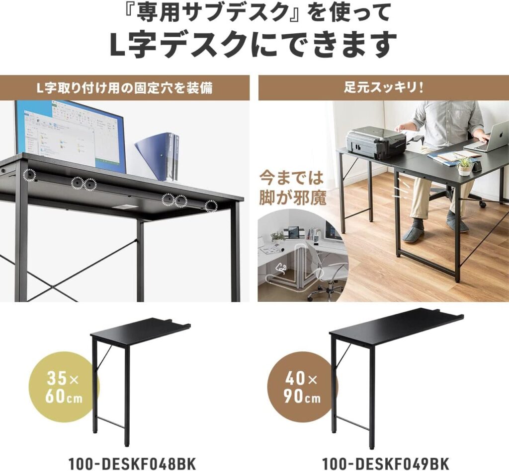 後に「L字デスクにしたいけど幅は小さくていいかな・・・」と思っている方には、カスタマイズ専用のサブデスクでプラス出来ます。
