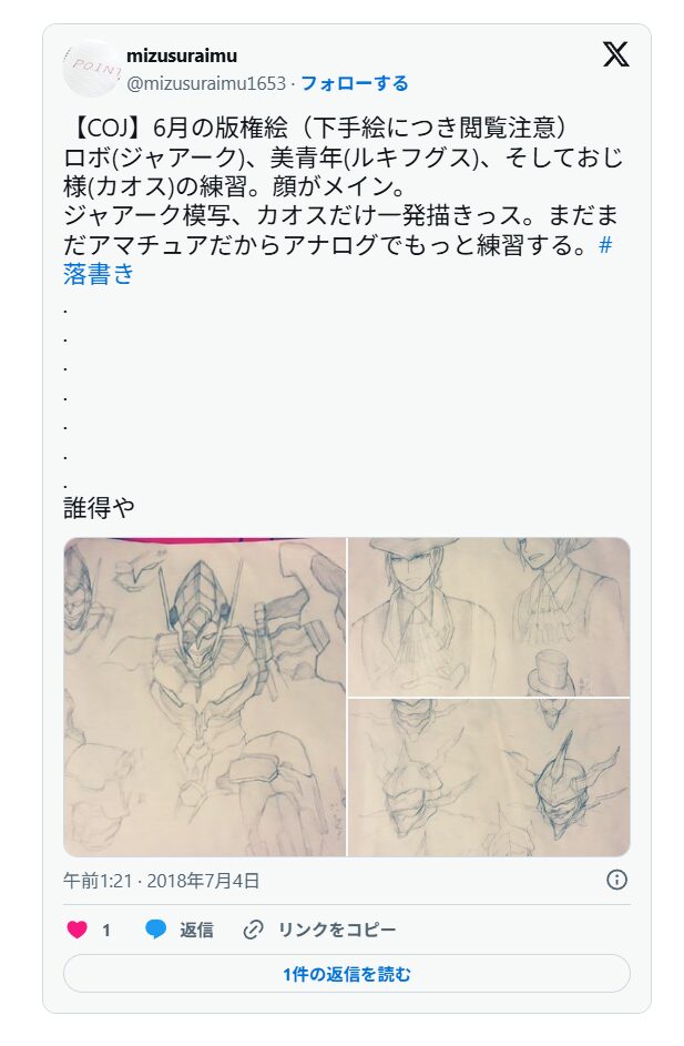さらに版権キャラだって自分が大好きで、かっこよく描きたいから、上手い公式絵に寄せるべく観察することが多かった。それは尊敬に値するわけだし、今後のオリキャラを作る参考や絵を練習するにはもってこいだったのだ。