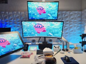 しかし現在の自分は液タブを使用するだけにとどまらず、PCモニター2台を置いて作業中に資料も動画も見れるトリプルディスプレイ環境状態。