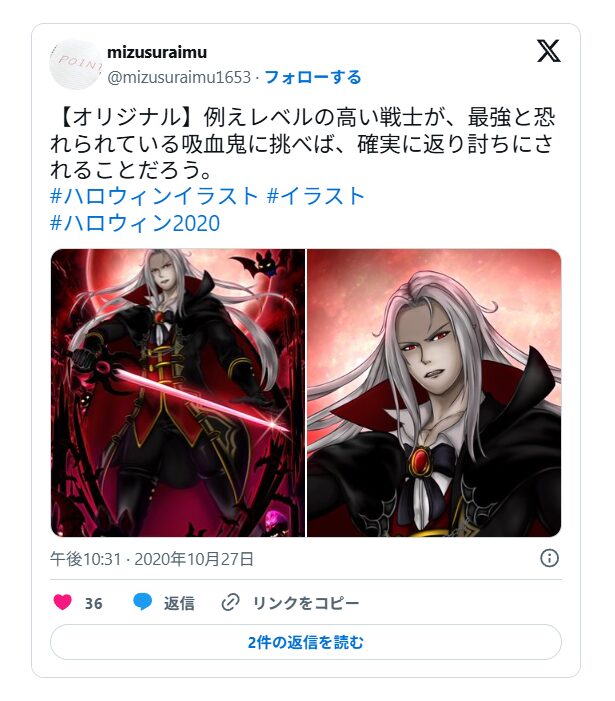 まあ、今年から……てかハロウィン=吸血鬼のワードをタイトルに入れているせいか、自分が描いたオリキャラの記事が見られるようになってきて、つい最近だと