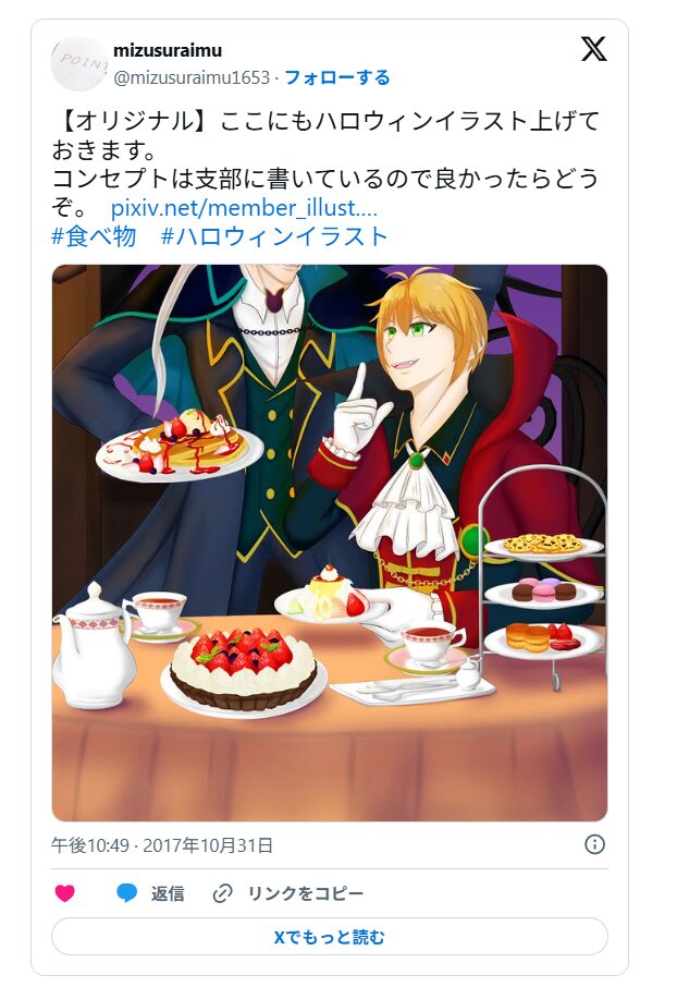 特に2017年のハロウィンイラストは、制作に60時間(ガチ)をかけたにも関わらず、Twitterでいいねもリツイートも全くないという、盛大にズッコケ。